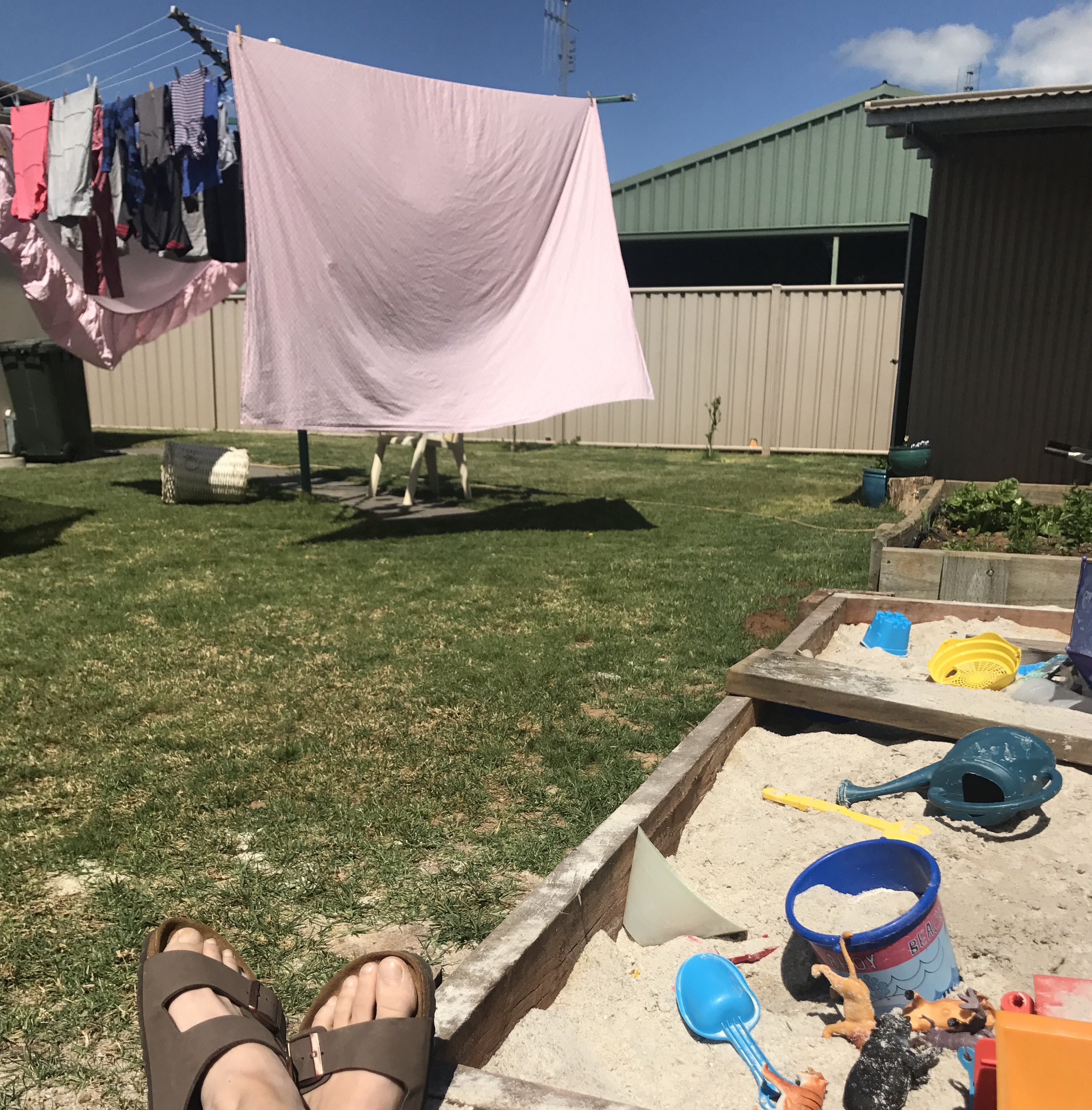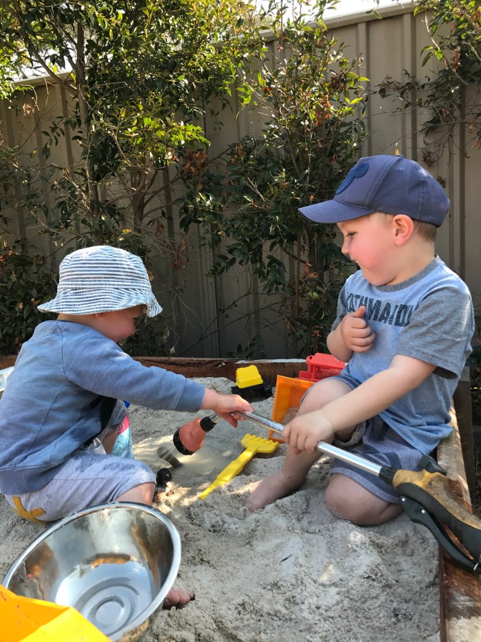 10.30am: Free play, often in the backyard. This is generally the time I hang out washing and water pots so the kids will play in the backyard.
